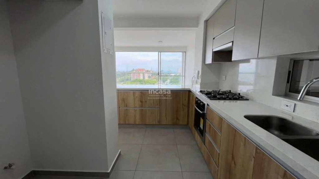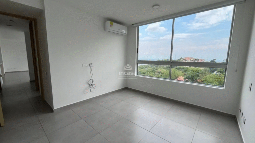 Apartamento en venta en el Mameyal con un área de 92.30 m², que ofrece dos habitaciones —la principal con baño completo, vestier, aire acondicionado y blackout, y la auxiliar también con baño completo y clóset— además de baño social, sala-comedor con hall de acceso, cocina abierta tipo americana, balcón con vista a Cali y zona de oficios con calentador a gas. Cuenta con dos parqueaderos en línea y un depósito.