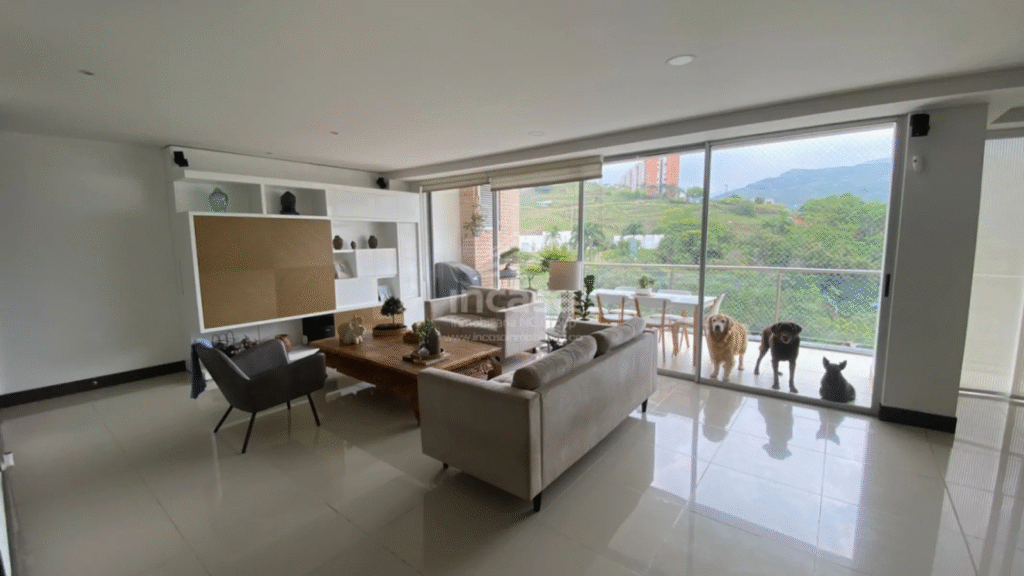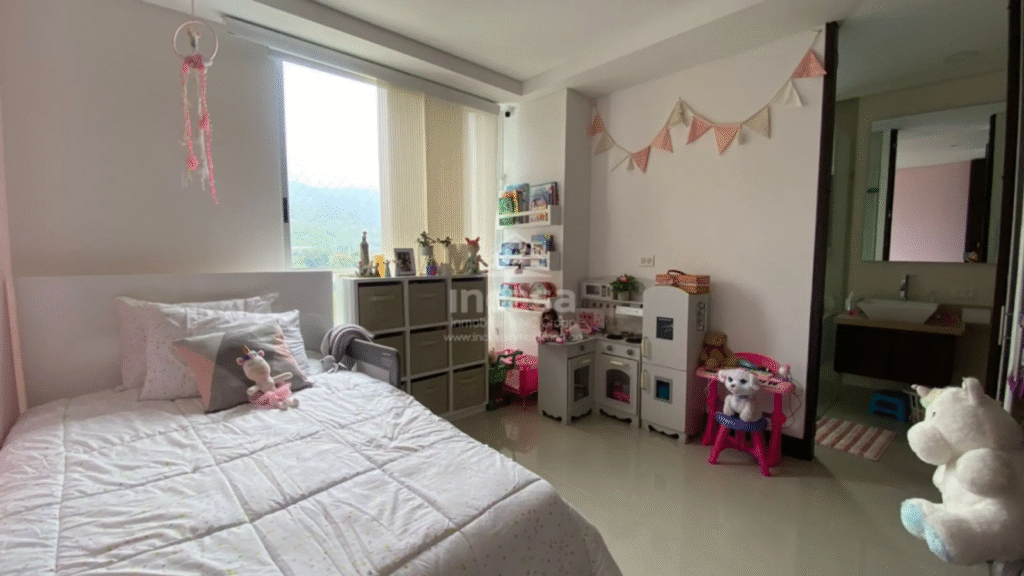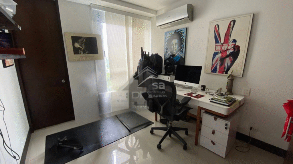 Apartamento de 211 m², distribuidos en 3 habitaciones, cada una con baño privado, siendo la principal la más amplia y destacada al contar con vestier y balcón. En total, el inmueble dispone de 5 baños. La zona social integra una cómoda sala-comedor, acompañada de un estudio ideal para trabajo o entretenimiento. La cocina abierta con barra se complementa con una funcional zona de oficios y una habitación de servicio con baño.