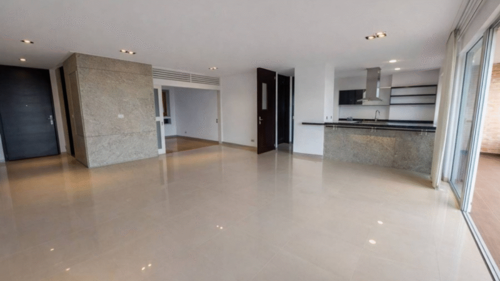 Apartamento en Normandía de 212 m², ubicado en piso alto con vista panorámica a la ciudad. Cuenta con 3 habitaciones, cada una con baño privado, para un total de 5 baños incluyendo baño social y baño de servicio; amplia sala–comedor integrada a un gran balcón, estudio y sala de TV, cocina abierta con barra tipo americana, zona de oficios, cuarto de servicio con baño, 4 parqueaderos independientes y 2 depósitos.