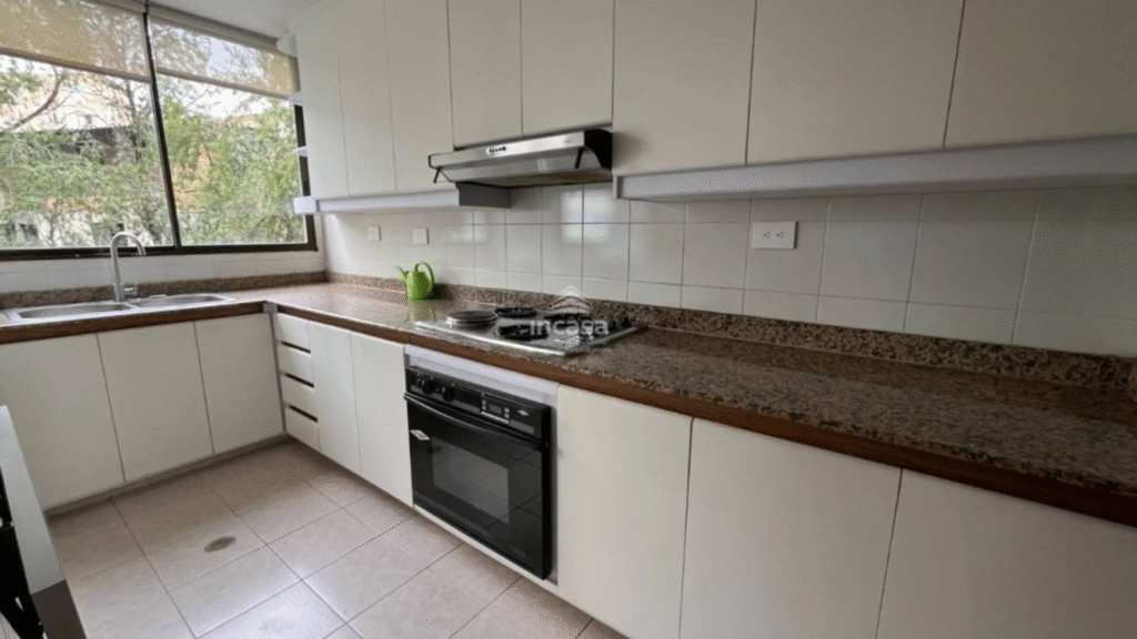 Apartamento en venta con 133,1 m² de área, diseñado para ofrecer amplitud, confort y acabados de alta calidad. Cuenta con 4 habitaciones, incluida la principal con baño privado y amplio clóset, dos habitaciones auxiliares que comparten baño y habitación de servicio con baño y clóset. Dispone de 4 baños en total, amplia sala–comedor con excelente iluminación natural gracias a sus ventanales, estudio con biblioteca y clóset, cocina funcional integrada a la zona de oficios, y no cuenta con balcón. El apartamento incluye dos parqueaderos en línea y depósito. Entre sus acabados se destacan pisos en mármol, ventiladores centrales en dos habitaciones, blackouts, calentador a gas y caja de seguridad.