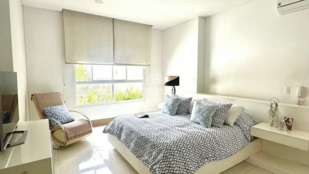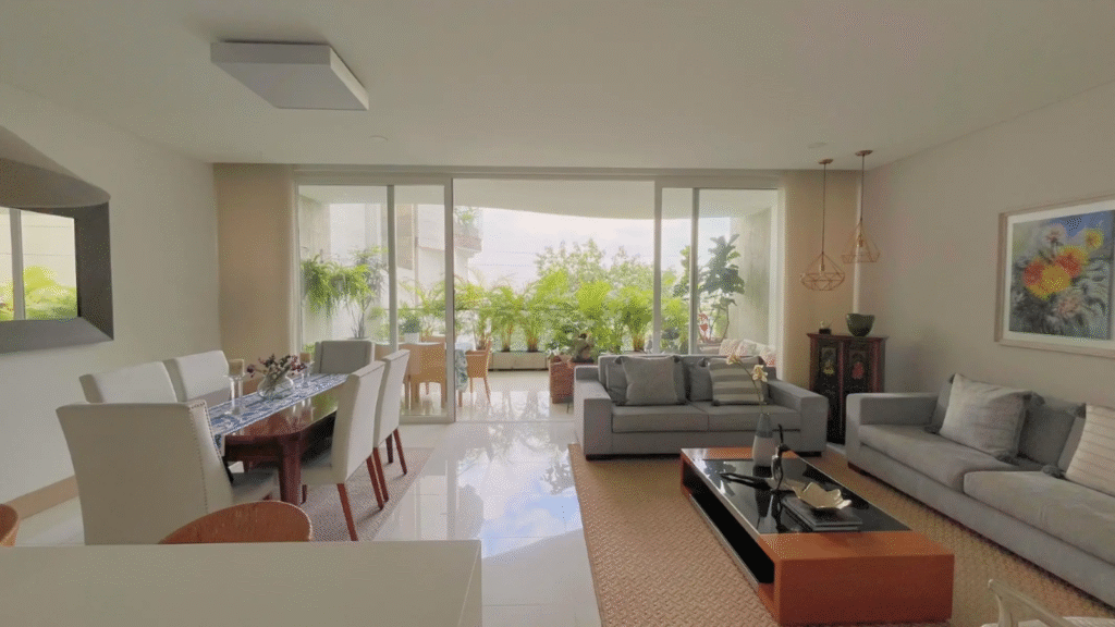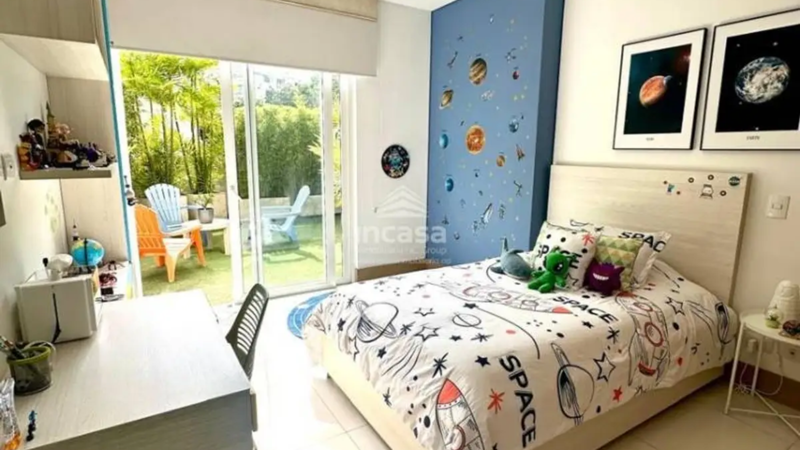 Área total de 262 m², distribuidos en 196 m² de apartamento y 66 m² en terrazas de uso exclusivo, en moderno apartamento ubicado en Bellavista. Cuenta con 3 habitaciones, todas con baño privado; la habitación principal dispone de vestier, mientras que las habitaciones auxiliares tienen acceso directo a una terraza privada con vista a zona verde. Ofrece una elegante sala–comedor integrada a un balcón con vista a la ciudad, además de estudio y sala de TV, ideales para el confort y la vida familiar. La cocina es abierta con barra, moderna y funcional, complementada con zona de oficios y cuarto de servicio con baño. Incluye 3 parqueaderos y 2 depósitos.