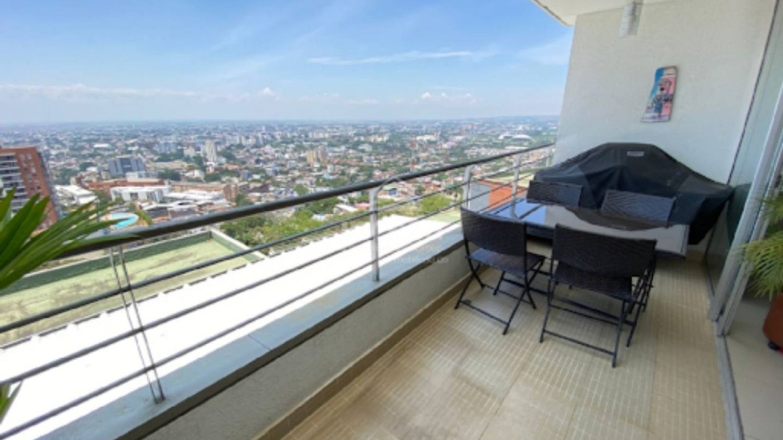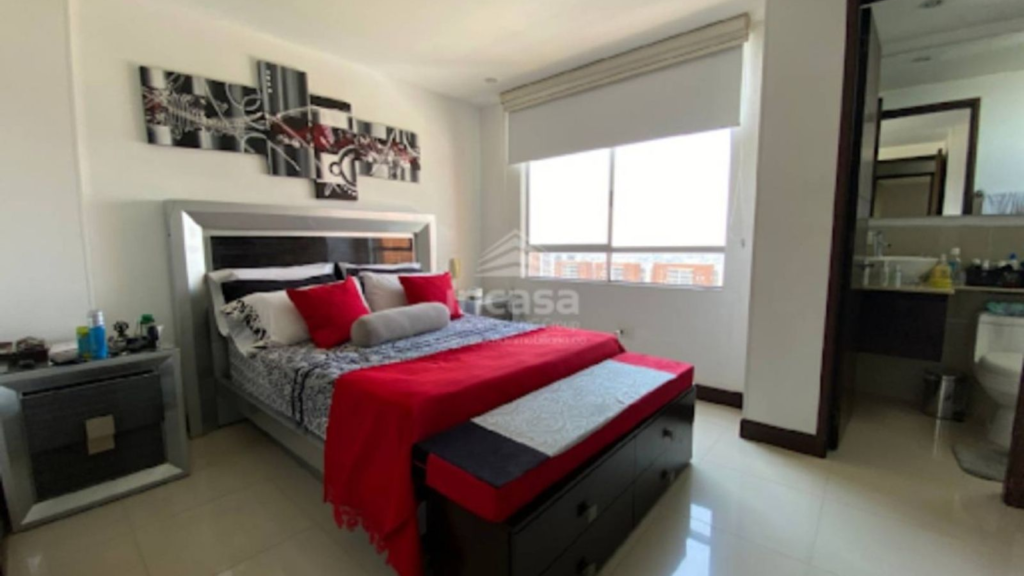 Apartamento de 102 m² con excelente distribución: 3 habitaciones, la principal con vestier y baño privado; además baño de alcobas y baño social. Amplia sala–comedor integrada con balcón de generoso tamaño y vista panorámica a la ciudad, hall de alcobas con opción de estudio o estar de TV, moderna cocina abierta con barra y zona de oficios independiente. No cuenta con cuarto de empleada. Dispone de 2 parqueaderos independientes en sótano y depósito. El conjunto residencial ofrece completas zonas comunes con 3 piscinas, canchas de tenis, squash y múltiple, salón social y zona de juegos, ideales para el disfrute familiar.