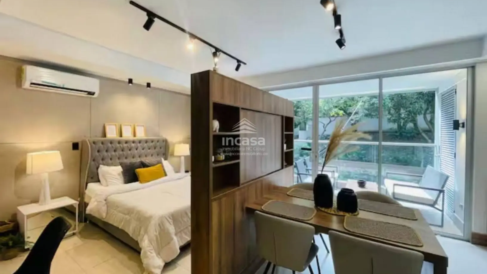 Apartamento de 52 m² ideal para inversión en rentas cortas, con 1 habitación, 1 baño, sala–comedor, cocina integral, balcón con sala exterior, zona de oficios equipada con lavadora, secadora y calentador a gas, además de aire acondicionado y sistema de domótica. Se vende a puerta cerrada, completamente amoblado con cama doble, futón y mobiliario de comedor. Incluye 1 parqueadero. Una excelente oportunidad de inversión en una de las zonas más atractivas y valorizadas de la ciudad.