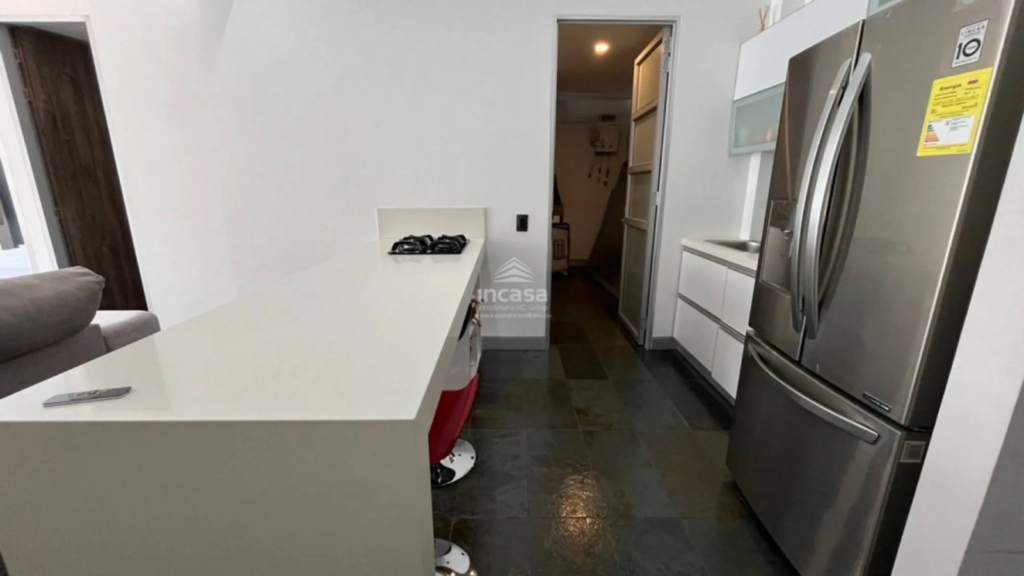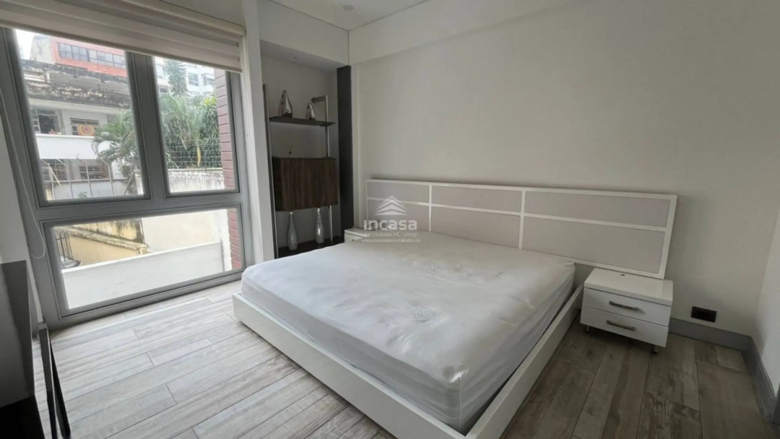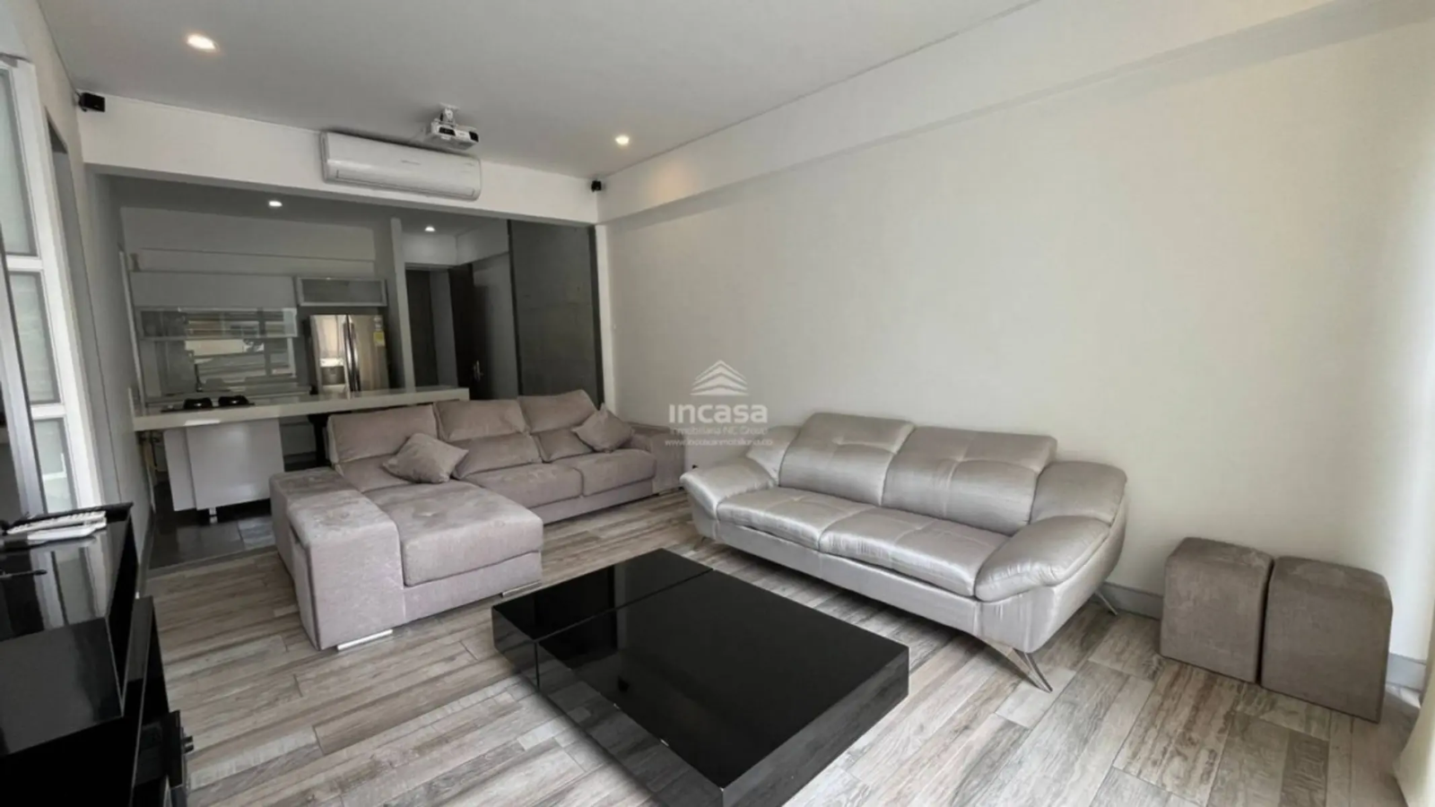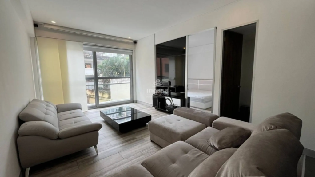 Apartamento de 65 m², con 1 habitación principal con baño y vestier, sala–comedor, cocina abierta con barra estilo americano, zona de oficios, 1 parqueadero y depósito.