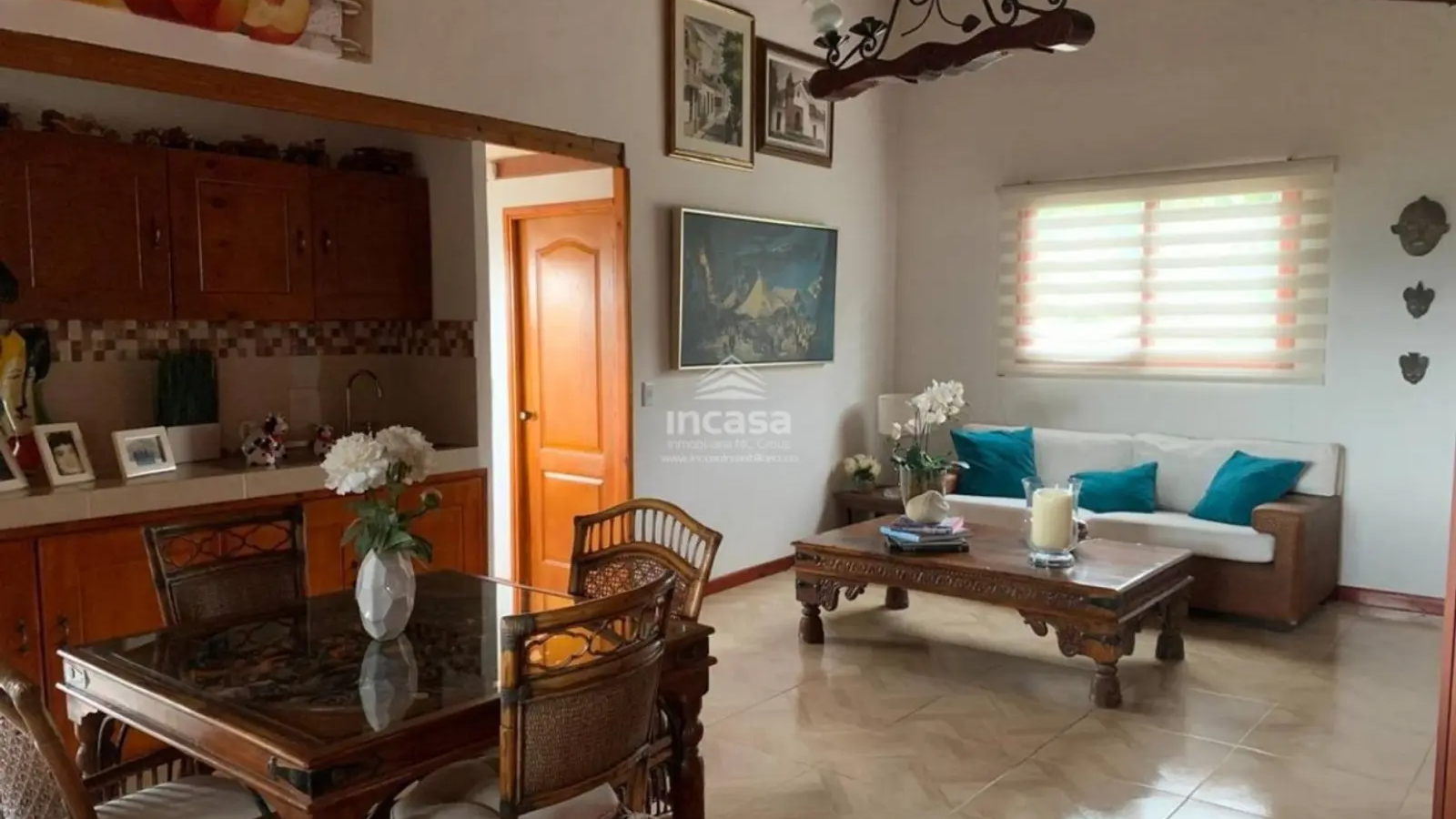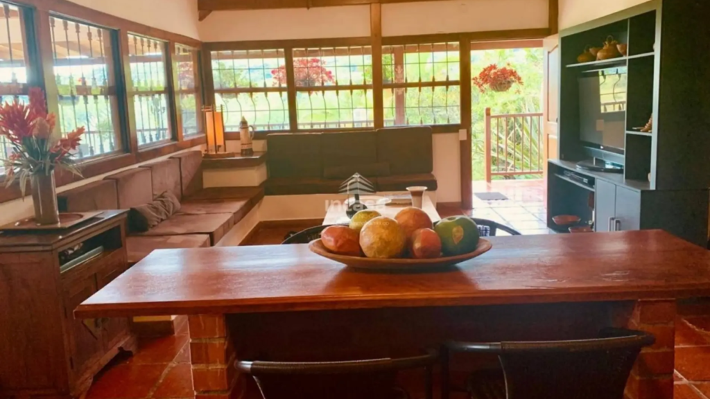 Dispone de amplios espacios sociales como sala de TV, comedor, corredores coloniales, zona de juegos y BBQ. En el segundo nivel se complementa con sala, comedor, cocina y estudio. La cocina integral está diseñada con acabados en madera y excelente iluminación.