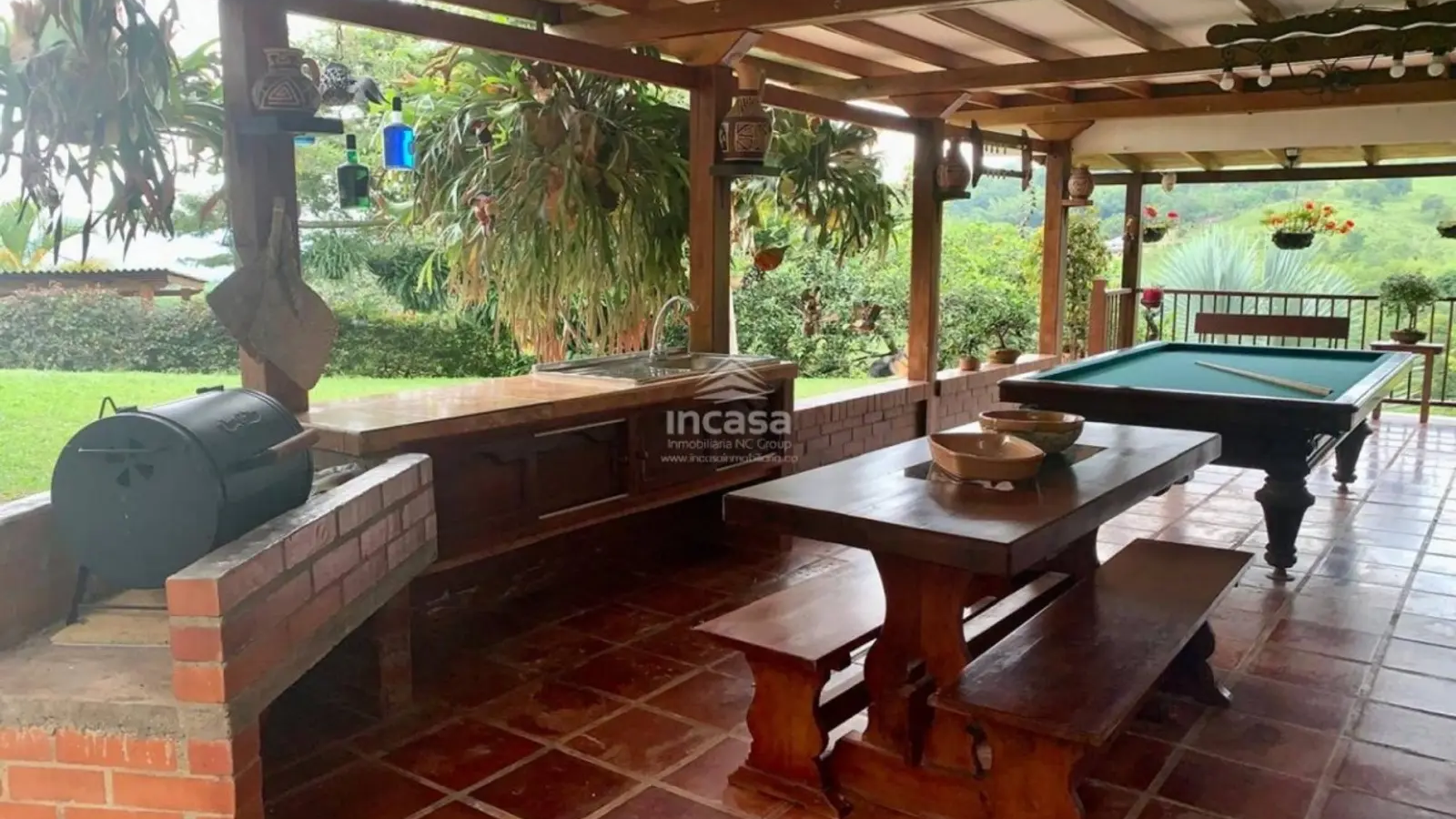 La finca incluye piscina, kiosco, cancha múltiple en cemento y parqueadero cubierto. Está rodeada de zonas verdes y árboles frutales como guanábana, mandarina y naranja, creando un ambiente natural y fresco.