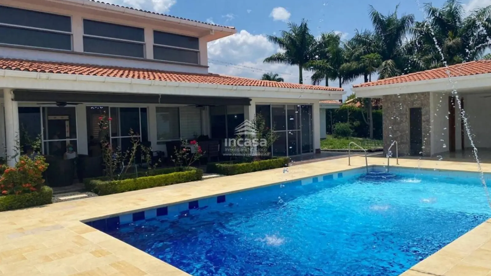 Casa campestre en condominio de Jamundí, con un área construida de 468 m² sobre un lote de 1.100 m², ofrece cinco habitaciones, cada una con