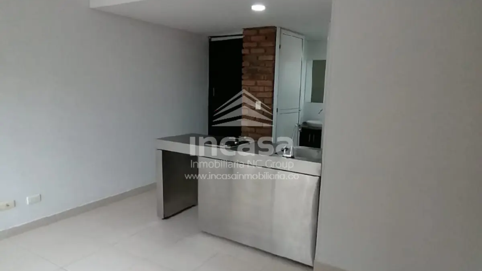 Apartaestudio de 19 m² en arriendo, de un solo ambiente, con área de alcoba y clóset, un baño completo y cocineta con espacio para nevera;